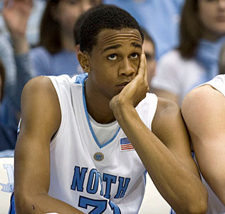 (Photo: UNC's John Henson watches as the Tar Heels fall behind by 20 points to Virginia in the second half on Sunday January 31, 2009 in the Smith Center in Chapel Hill, N.C. ROBERT WILLETT robert.willett@newsobserver.com)